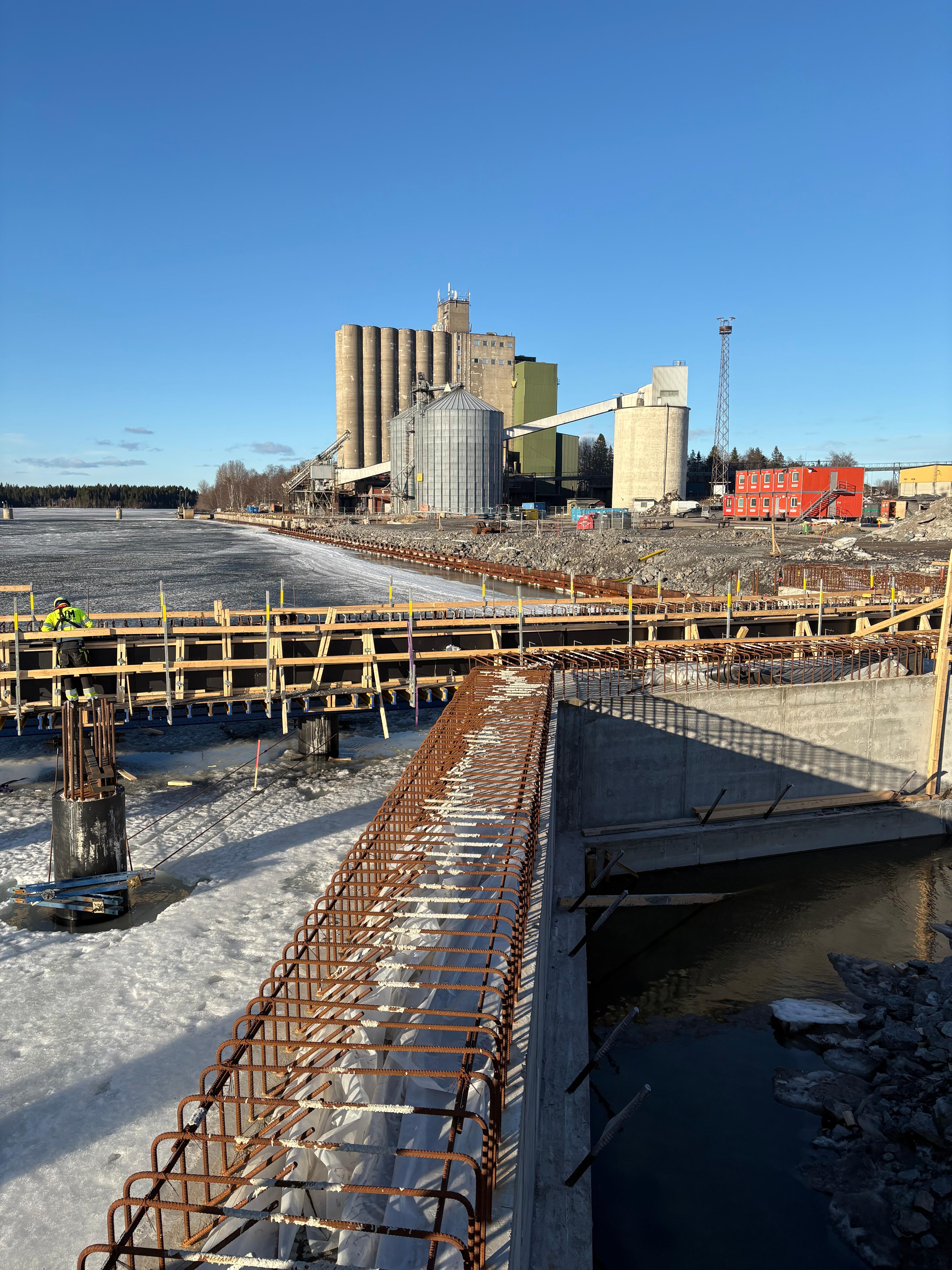 Pågående arbete påverkas av väderet då entreprenören är i och kring vatten med is och allt vad det innebär.