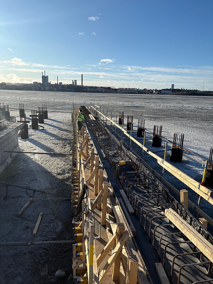 Gjutining av etapp 3 mittenbalk 19 m och fortsatt form av etapp 4.